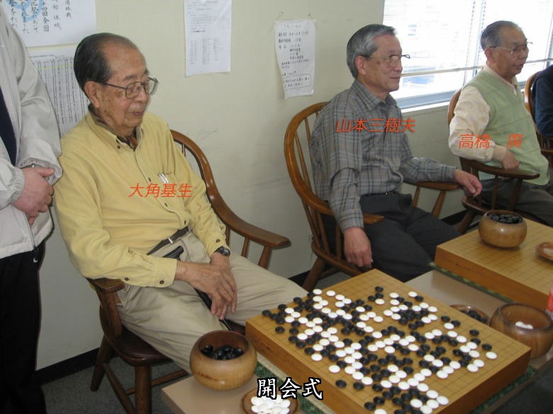 | s 平成23年4月24日(日)横浜囲碁センターにて寿会囲碁愛好者が参加して恒例の春季囲碁大会が開催されました。 棋力別にA,Bの2クラスに分けトーナメント式で、また敗者復活の敢闘賞をめざした熱戦が展開されました。 当日は、公式対局や公式戦終了者同志の自由対局などで、午後5:00まで存分に囲碁三昧の一日を過ごしました。 参加者の皆様の対局の様子及び入賞者の喜びの様子をご覧ください。 以下敬称略 参加者(計20名) A組 榮 史郎・ 坂尾 忠寛・ 池田 裕・ 新谷 則雄・ 嶋田 稔 岡田 暁・ 岡田 幸吉・ 高橋 聡一 B組 大角 基生・ 村田 一雄・ 石渡 俊雄・ 本城 四郎 岡部 幸夫・ 高橋 廣・ 川上常吉・ 山本 三樹夫 松尾 浩昭・ 春日 昌広・ 熊崎 利昌・ 中倉 国男 結果 A組・・(優勝)新谷、(準優勝)榮 (敢闘賞)坂尾 B組・・(優勝)本城、(準優勝)村田(敢闘賞)松尾 |