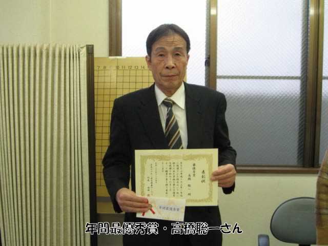 納会では先ず、今年1年間を振り返り、秋季(10月〜12月)及び年間(1月〜12月)最高の成績をあげられた、高橋聡一さんに最優秀賞が、例会への年間参加率96%を達成された松本築さんに奨励賞が授与されました。