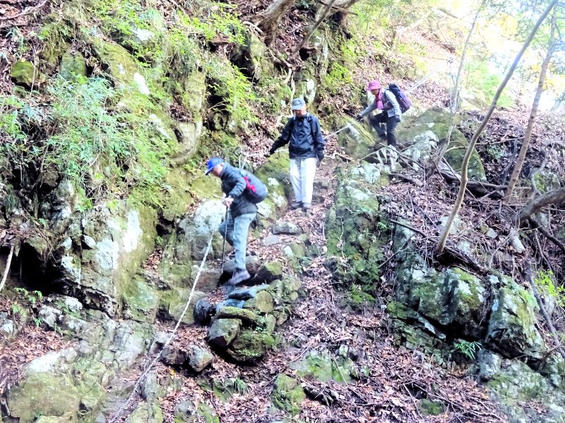 ◇メモ 伊勢原駅に4名が集まる。 9時40分発のバスに乗り、大山ケーブル駅で下車。今日は大山寺、大山下社、蓑毛越えなので、のんびりと歩く。大山寺の赤いモミジは少し早く、下社のモミジの紅葉は最盛期で綺麗だった。下社の境内では菊花展をやっていて、みごとな菊の鉢物を見る。紅葉の下で昼食を摂る。12時30分下山開始。蓑毛越えの登山道は先日の台風19号で倒木があったり、崩れていたりして荒れており慎重に歩き、無事に蓑毛バス停に着く。14時5分発のバスに乗り秦野駅に 到着。解散となった。 ◇ハイキング催行記録 ◇参加者 4名(敬称略) 山内浩司、脇坂宜志、景山康二、小池由美子 |